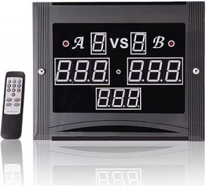 Electronic snooker scoreboard with remote control. Modern black glass finish