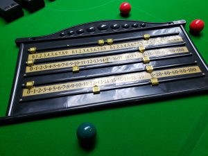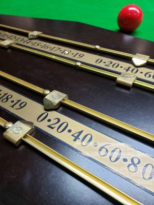 MAHOGANY effect snooker scoreboard with BRASS markers 2 players