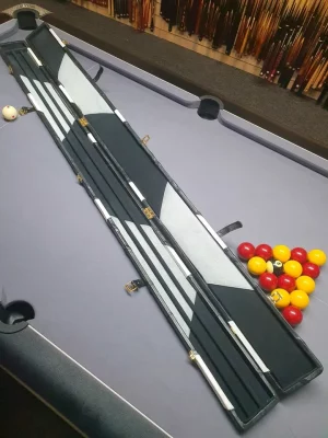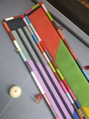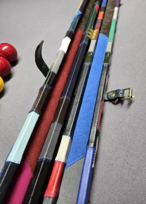 Out of stock Genuine leather premium extra wide cue case for 3x 1 piece cues BLUE, BLACK and WHITE BLOCKS £319.99 Details