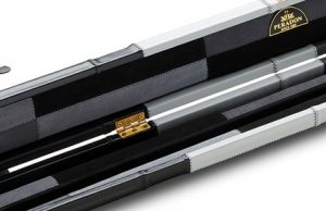 Peradon GENUINE LEATHER black and grey blocks design wide case for 2 x 1 piece cues £299.99 Add to cart