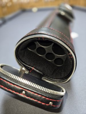 Premium cue case for centre jointed cues.. holds up 4 shafts and 2 butts, Robust case in a hard wearing Striking Black finish with Red stitching £199.99 Add to cart
