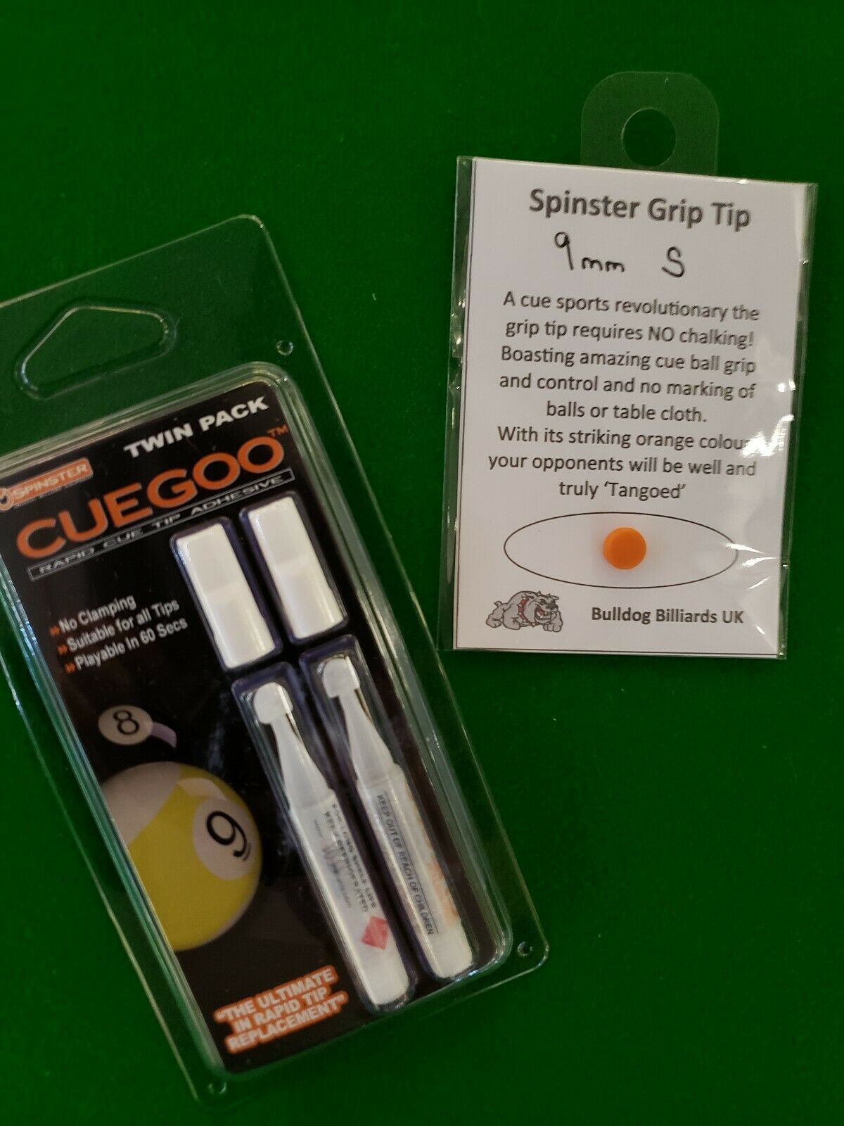 CUE GOO and SPINSTER tip set. Tango Tip and tip glue