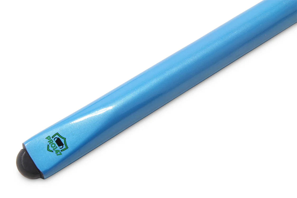 The PRO147 Sky Blue 2 piece cue is a perfect beginner’s cue that is easy on the pocket. The bottom half embodies a striking sky blue painted butt coupled with a smooth sanded ash shaft. This cue is a no nonsense cue for the aspiring pub or home player.